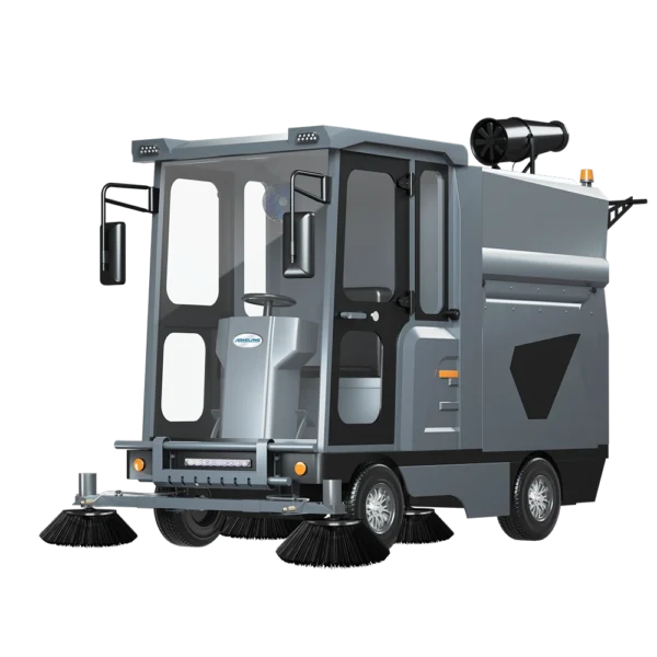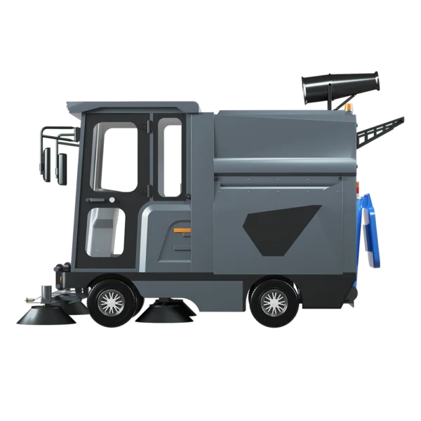 The atomization system helps reduce dust during sweeping by spraying water up to 5 meters high.